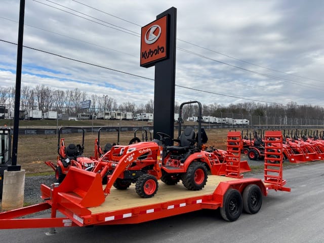 Kubota BX2680V-1 Hydrostat tractor with a Kubota LA344S loader and 20′ Jobsite trailer. -$23,450 cash or payments as low as $344/month.