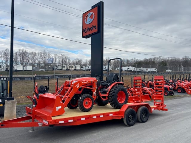 Kubota LX2620HSD Hydrostat tractor with a Kubota LA535 loader and 20′ Jobsite trailer. -$28,997 cash or payments as low as $440/month.